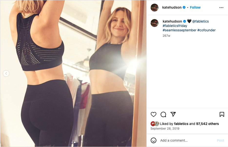 One of the company’s most successful campaigns involved a collaboration with the brand’s co-founder Kate Hudson. Hudson’s massive following drastically expanded Fabletics’ reach and introduced the brand to tens of thousands of potential customers.