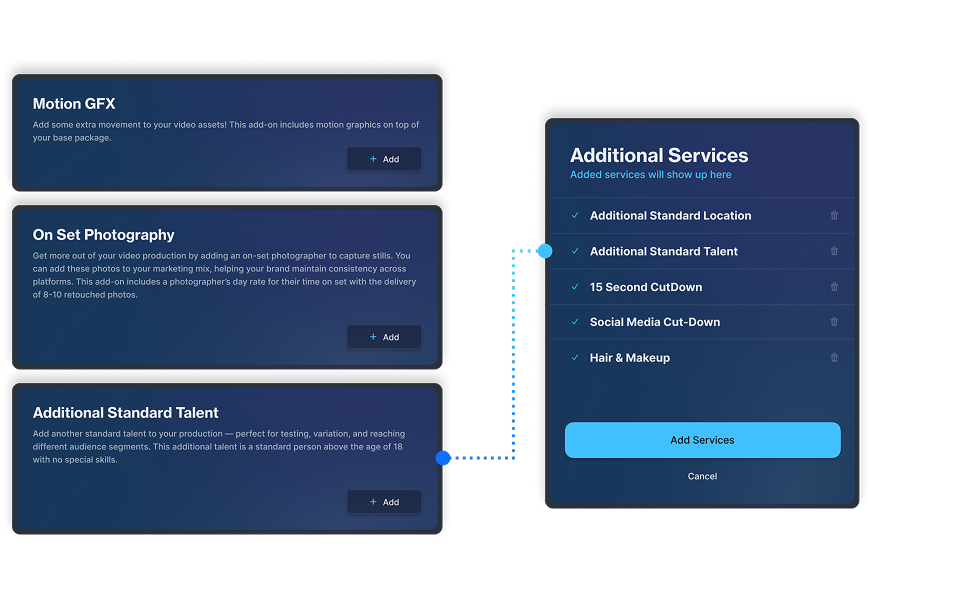 Each package includes one concept round. Need more? Note it in your brief — our video pros have you covered.