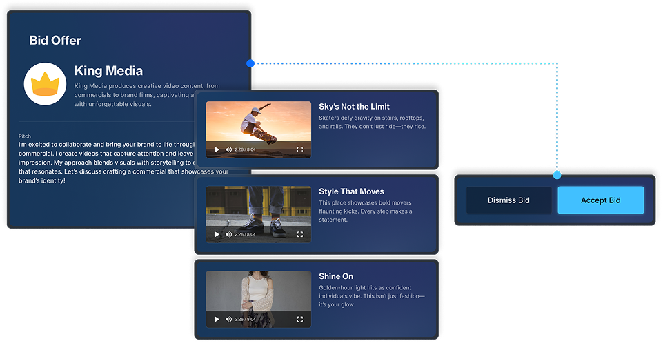 QuickFrame Marketplace connects you with vetted video pros to bring your creative to life: quickly, affordably, and at scale. No agencies, no guesswork — just results.
